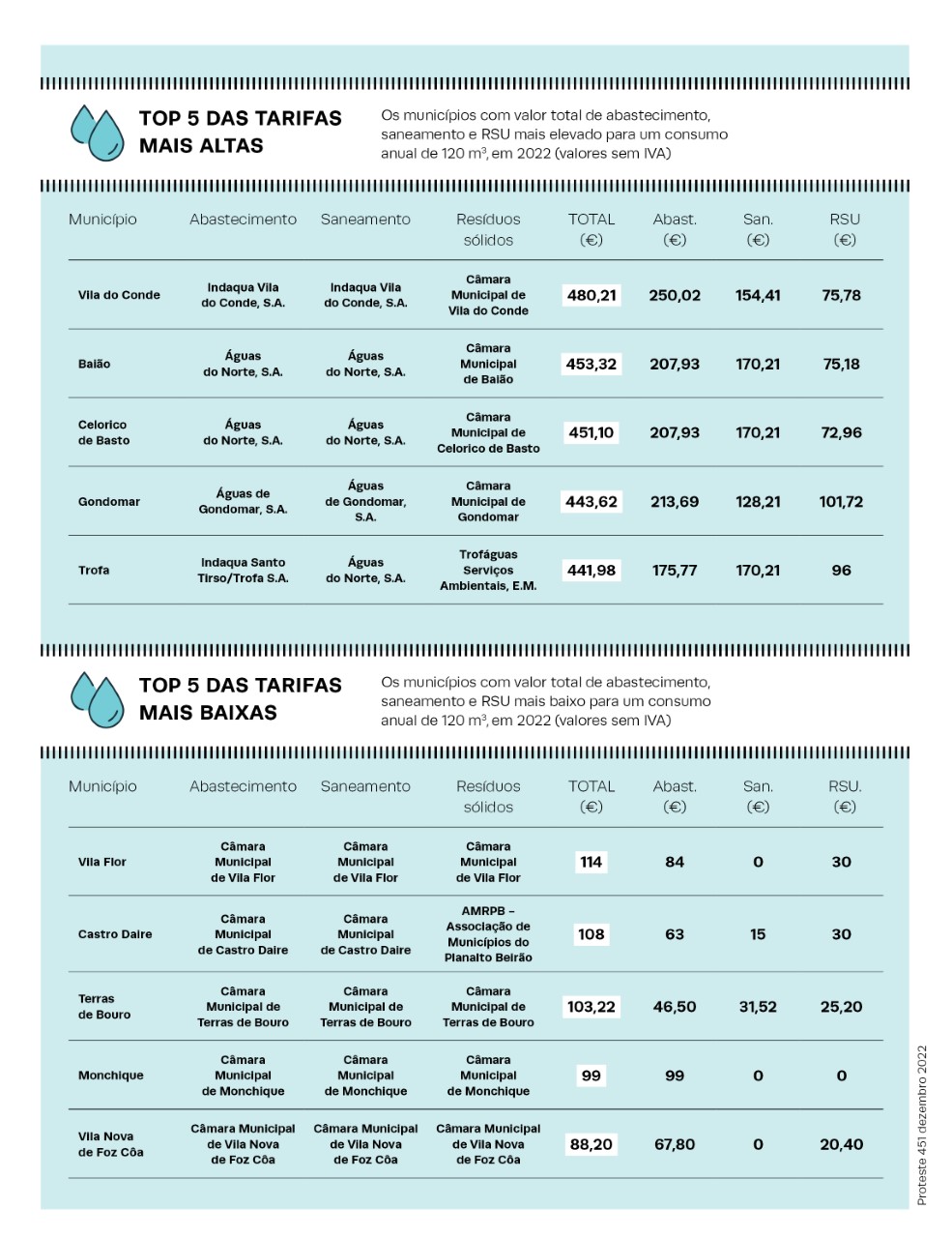 Confira o top 5 dos municípios com facturas da água mais elevadas e mais baixas:
