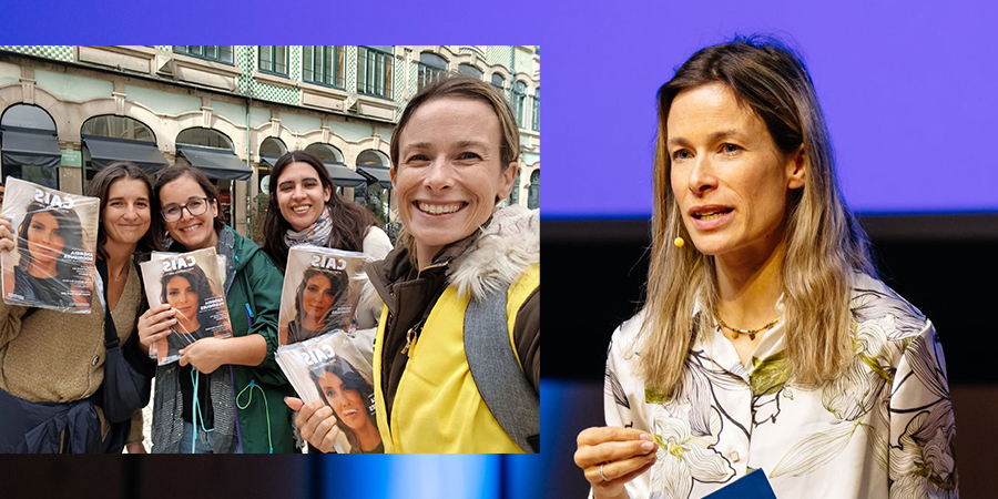 Tal como diz uma pessoa pela qual tenho enorme estima, não podemos parar, é agarrar as oportunidades e “go, go, go”. É isso que tenho feito, mesmo quando o coração acelera com o nervosismo, subo a palco, pego no microfone e falo, falo do que me vem do coração, e de repente a plateia torna-se como uma continuidade de mim… E aí, já ouço “estás exactamente onde devias estar”. Falo de impacto e não apenas com números, mas com histórias, com testemunhos, o impacto é muito mais do que números – como medes o empoderamento que levas a jovens ou a uma comunidade? A esperança que criaste? Teres contribuído para que voltassem a sonhar, teres – como uma vez me disseram numa acção com população mais sénior – “dedicado um pouco do teu tempo, quando a minha família nem me vem visitar?”.