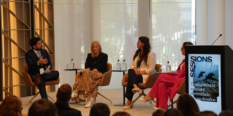 Seguidamente, José João Henriques, associado sénior da PLMJ, abordou os desafios e as implicações da nova Directiva Europeia sobre Transparência Salarial, que reforça a Lei 60/2018 – já conhecida pelas empresas – com o objectivo de combater disparidades salariais injustificadas entre géneros. A directiva pretende reduzir a «opacidade nos processos de recrutamento, exigindo a divulgação da banda salarial e das convenções colectivas aplicáveis, e proibindo perguntas sobre histórico ou expectativa salarial, para evitar vieses».