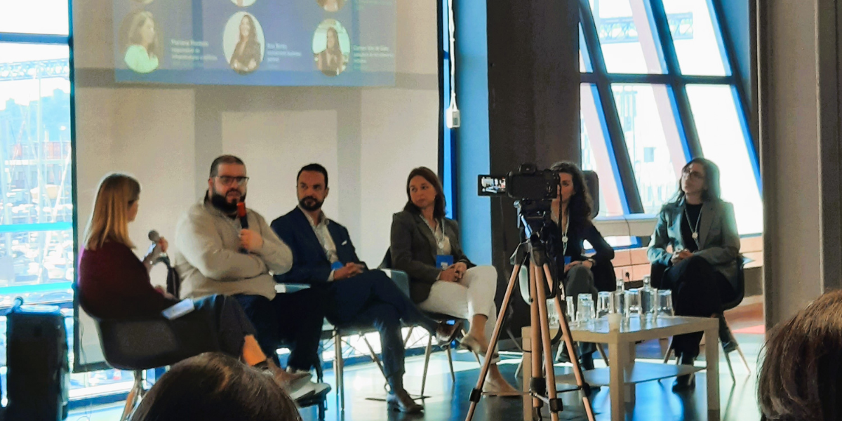 A mesa-redonda “Desafios e sucessos na contratação” juntou João Oliveira, assistente de Relacionamento com o Cliente da Randstad Portugal, Ana Bento, Recruitment Business partner da Airbus, Mariana Monteiro, responsável de Infraestruturas e Edifícios da ANA Aeroportos, Ricardo Mateus, gestor Operacional da Randstad Portugal, Marta Campos, coordenadora da Associação Portuguesa de Insuficientes Renais, e Carmen Vale de Gato, consultora de Recrutamento Inclusivo da Randstad Portugal.