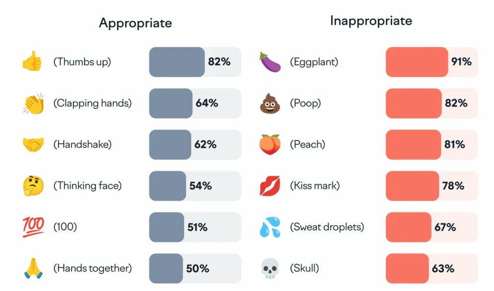 Os resultados do inquérito mostram que 47% dos trabalhadores nos EUA, Reino Unido, Alemanha e México acreditam que os emojis devem ser banidos da comunicação formal no local de trabalho.