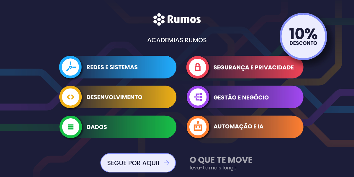 A Rumos, marca de formação e consultoria anuncia o lançamento da sua nova campanha de incentivo à formação tecnológica de longa duração. Entre os meses de Novembro e Dezembro de 2025 a marca oferece 10% de desconto nas Academias Rumos, abrangendo as edições que tenham início entre Janeiro e Junho de 2026.