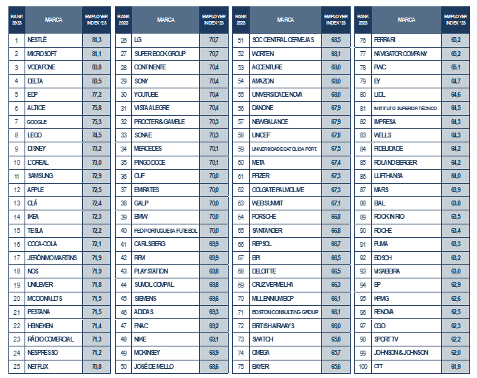 São estas as 100 marcas com a melhor imagem e reputação de empregabilidade em Portugal
