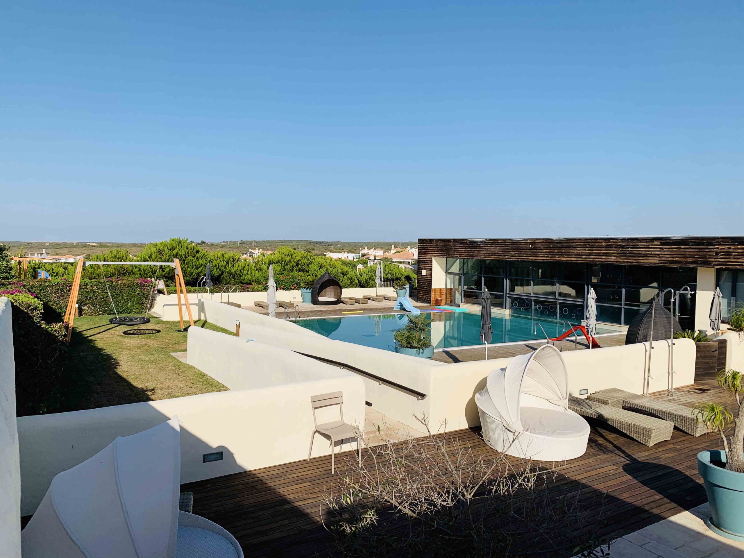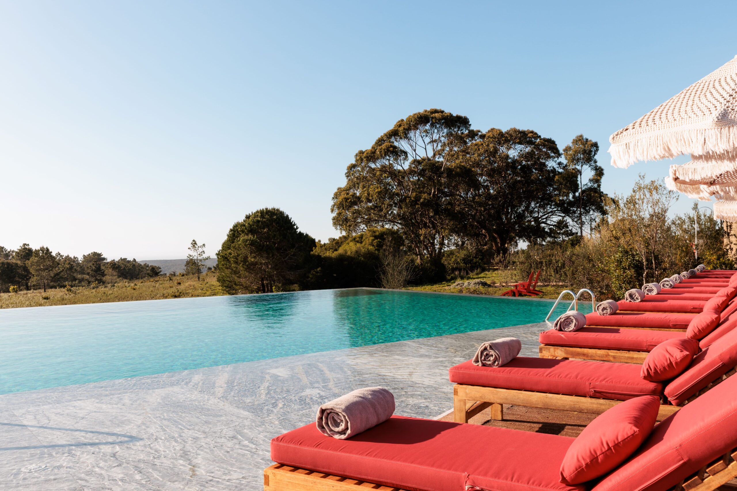 No coração do Parque Natural do Sudoeste Alentejano e Costa Vicentina, o Praia do Canal Nature Retreat é um refúgio de luxo onde a natureza dita o ritmo dos dias. A piscina infinita exterior, com vista para o Atlântico e envolta por uma paisagem pintada de verde, é o cenário ideal para mergulhos serenos e momentos de contemplação. Com um design que se funde na perfeição com a envolvência natural, este hotel de 5 estrelas oferece uma experiência de tranquilidade, onde o silêncio é apenas interrompido pelo cantar dos pássaros.
