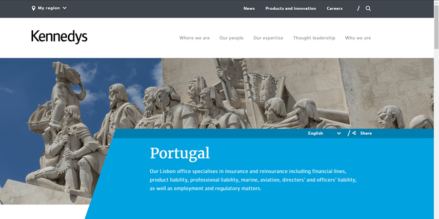 Em Portugal desde 2011, a Kennedys centra-se, essencialmente, na área Seguradora e Reseguradora, incluindo Linhas Financeiras, Responsabilidade pelo Produto, Responsabilidade Profissional, Marítimo, Aviação, Responsabilidade dos Administradores e dos Funcionários, bem como Insolvências, Direito Bancário, Direito Laboral e Direito Regulatório.
